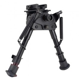 Il vantaggio di questo bipiede è che può essere regolato longitudinalmente inclinando la base, che si sblocca allentando la grande manopola manuale posta nella parte anteriore della base. Ciò permette di stabilire una perfetta orizzontalità della base in caso di terreno troppo irregolare, e quindi di mettere il vostro fucile nella posizione di tiro ideale. Due molle a balestra bilanciano la base e ne assicurano il ritorno nella posizione iniziale. Stringere la ruota una volta ottenuta la posizione corretta. I praticanti del tiro a lunga distanza lo apprezzeranno.
