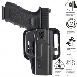 Passante a doppia asola: Per il porto esterno (OWB) classico sulla cintura. Anche questo supporto è regolabile per variare l'altezza dell'impugnatura e l'inclinazione, per una maggiore stabilità sul cinturone.