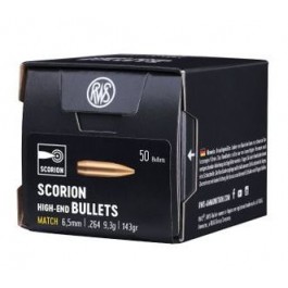 RWS SCORION HPBT Match Palle calibro 6,5mm.264'' 143grs 9.3g Match Conf. 50 palle cod.RWS 24260.12660