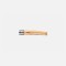 Manico: Il faggio è il legno più comunemente utilizzato per realizzare i manici Opinel. Certificato PEFC, proviene da aziende agricole gestite in modo ecologico nelle regioni del Giura e del Vercors. È duro, resistente e facile da lavorare. L'aspetto è uniforme, con un colore chiaro che va dal giallo al rosa. È riconoscibile per la presenza di numerose piccole linee scure. Il manico è verniciato per proteggerlo dall'umidità e dallo sporco.