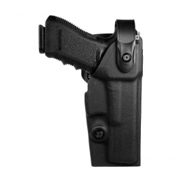 Fondina in speciale polimero stampato in termo-formatura, livello di ritenzione II, foderata internamente per una maggiore protezione dell’arma e silenziosità, sistema di sicurezza superiore con facilità di estrazione, vite di ritenzione sulla canna. Sistema di sicurezza Vega Push And Front.