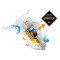 Il segreto dei laminati GORE-TEX è nella sua rivoluzionaria membrana bicomponente. La parte in PTFE espanso contiene circa 1,4 miliardi di microscopici pori per centimetro quadrato. Questi pori sono circa 20.000 volte più piccoli di una goccia d'acqua, ma 700 volte più grandi di una molecola di vapore acqueo. Così, mentre le gocce d'acqua non possono penetrare nella membrana GORE-TEX, il vapore acqueo, cioè il sudore in forma gassosa, fuoriesce facilmente. Nella struttura ePTFE è inoltre presente un elemento oleofobo (resistente agli oli) che, senza ostacolare il passaggio di vapore acqueo, impedisce l'ingresso di sostanze quali oli, cosmetici, repellenti per insetti o sostanze alimentari. Il risultato è una barriera totalmente impermeabile all'acqua, antivento e traspirante.